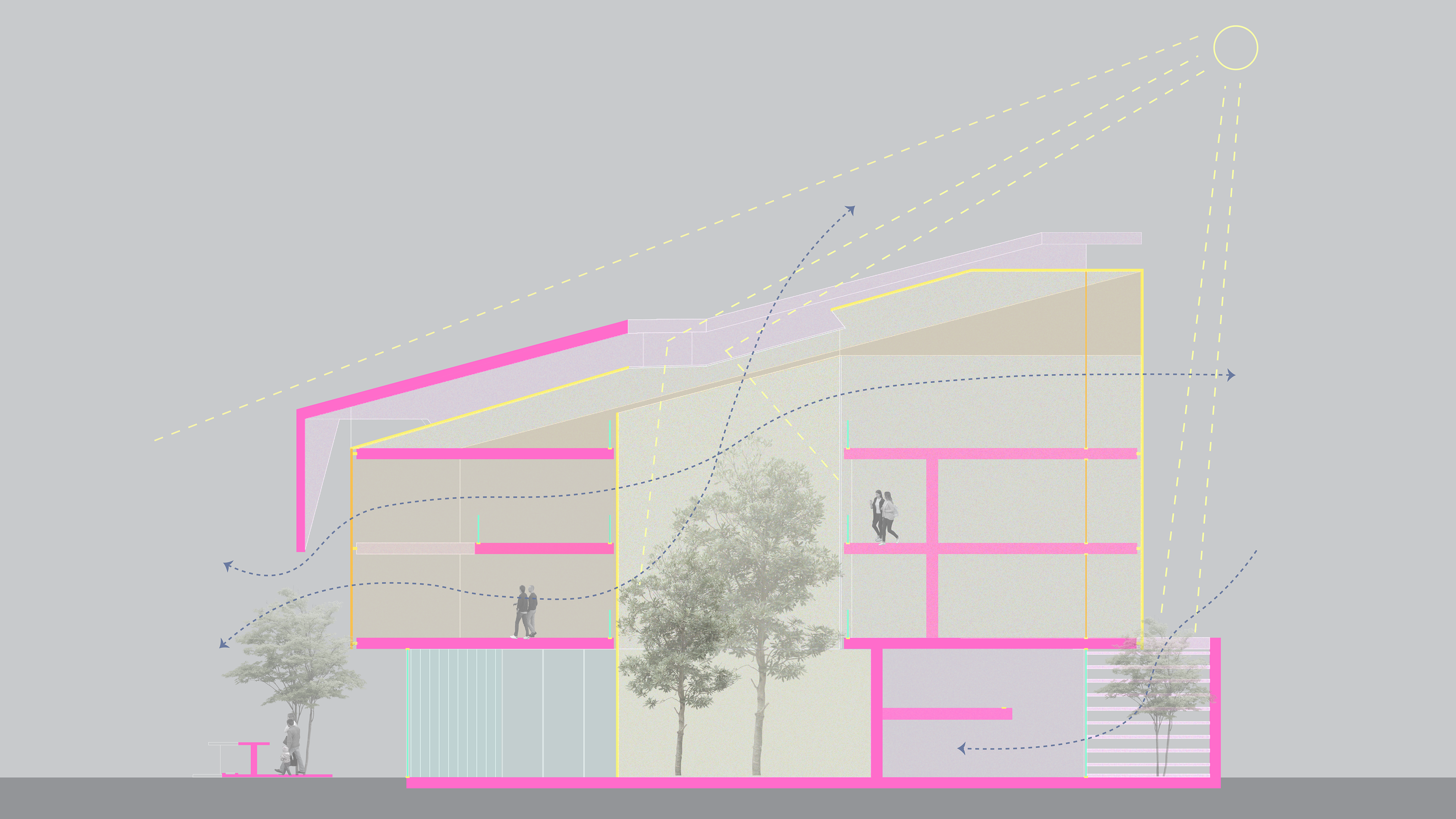 Conceptual section for religion and spirit building | 1:100 | Layered envelope design